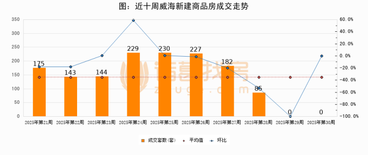 进入2025年第30周(07月21日-07月27日),威海新建商品房成交0套,较上周持平