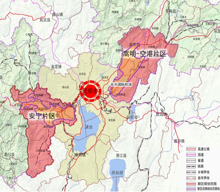 而对于未来具体的产业与功能区划布局,昆明确定了“一核两极三网五廊”的新空间形态。其中,“一核”指主城与呈贡新区组成的健康城市核,“两级”则分别为以高新区为载体,强化国家生物产业基地核心引领地位的大健康产业创新增长极,和依托高级滇中新区大健康生态系统所构建的大健康融合业态增长极。
