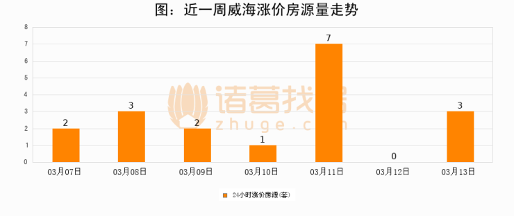 根据诸葛找房数据显示,威海24小时涨价房源量为3套,较03月12日增加3套,环比上涨0%。与此同时,涨价房源占比小幅扩大,业主信心有所提升。