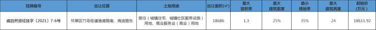 11月12日,威海市自然资源和规划局在威海市公共资源交易网公开挂牌出让一宗国有建设用地使用权。
