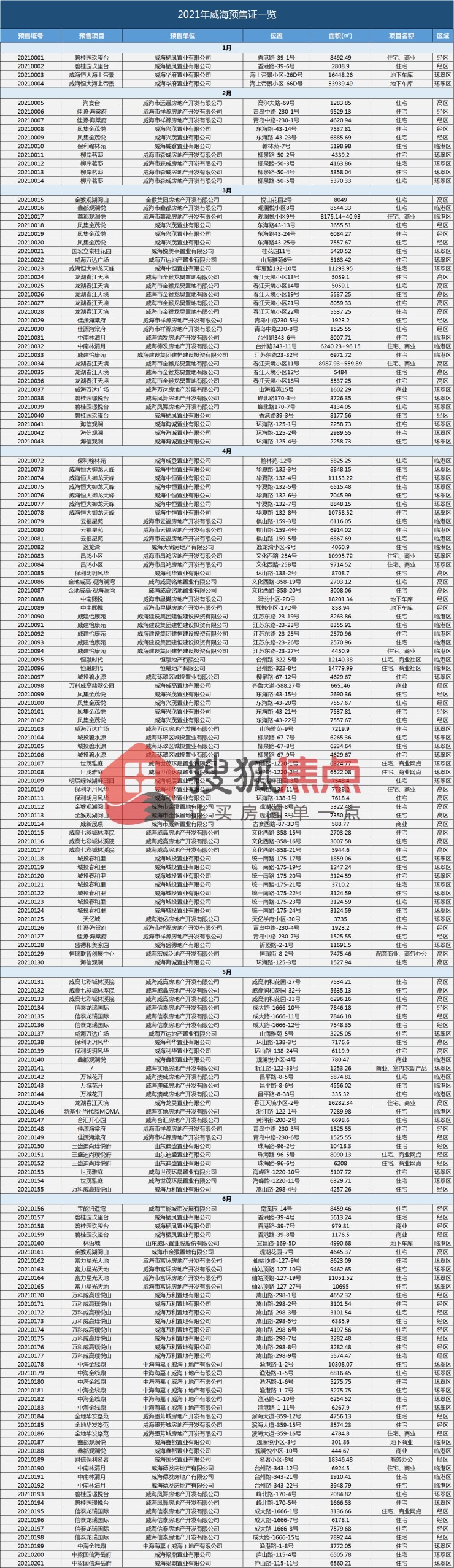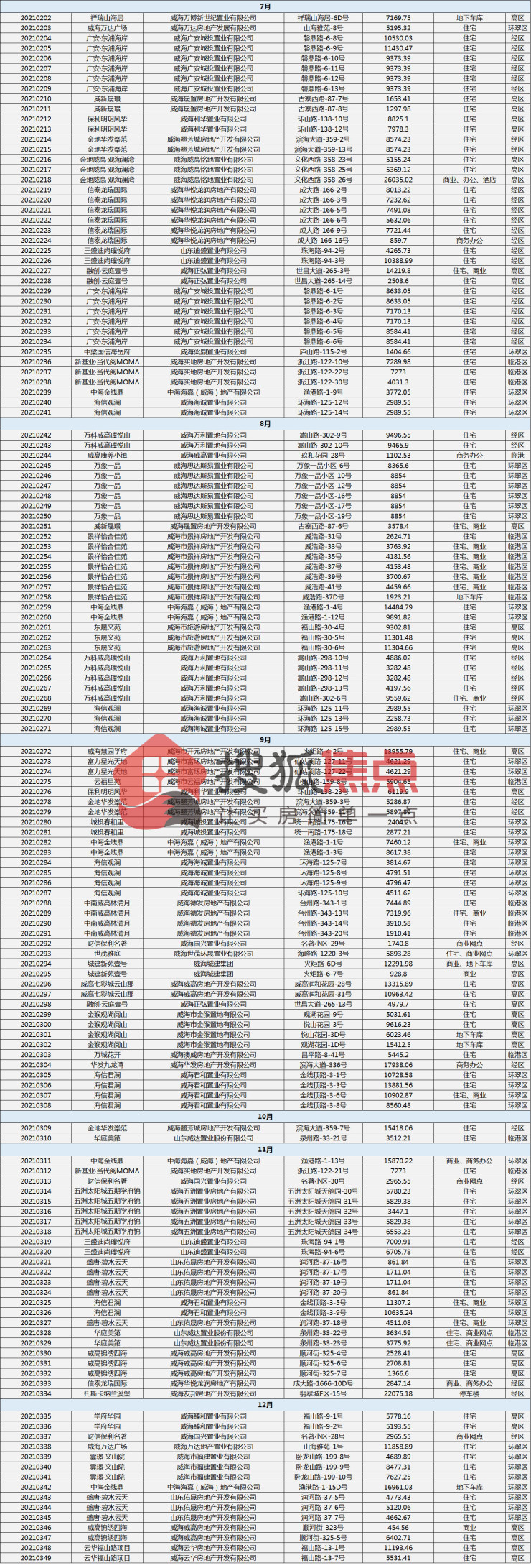 从2021年威海各区域面积看,环翠区占比是全年之最,其次是经区、高区、临港区,由此可见环翠区盘踞着很多知名开发商和本地实力开发商,价值可观。