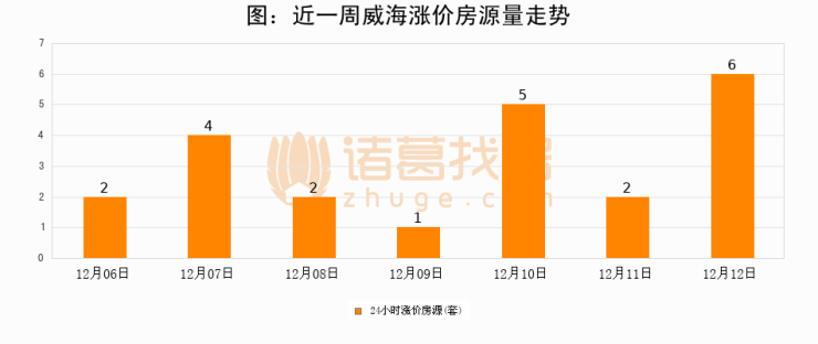 根据诸葛找房数据显示,威海24小时涨价房源量为6套,较12月11日增加4套,环比上涨200%。与此同时,涨价房源占比小幅扩大,业主信心有所提升。