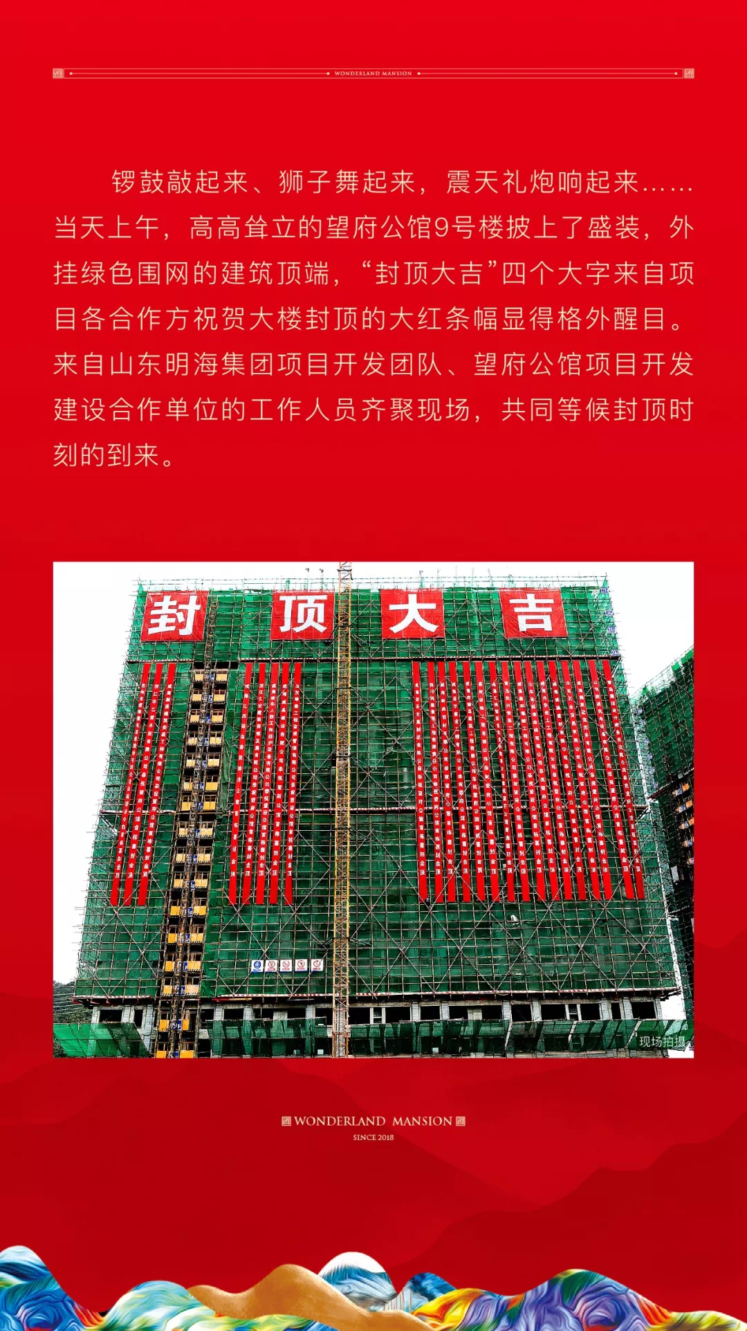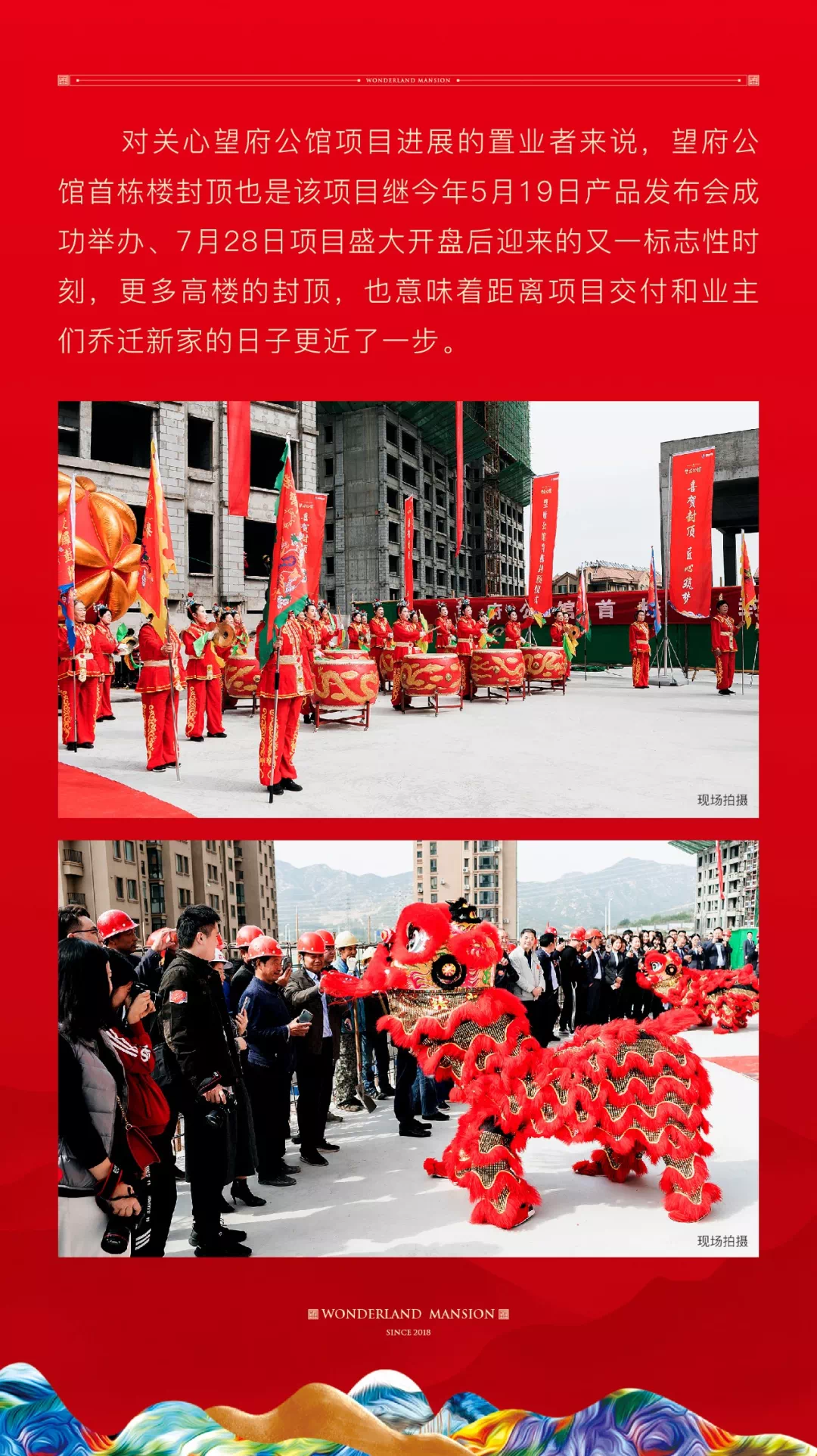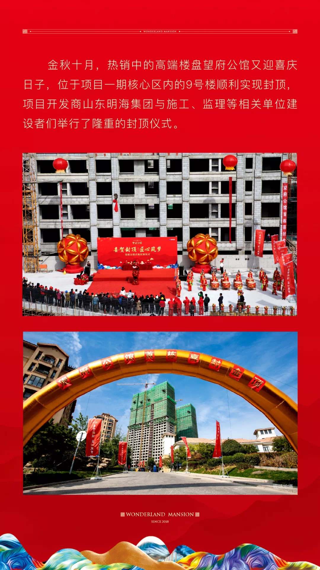 金秋十月,望府公馆又迎喜庆日子,位于项目一期核心区内的9号楼顺利实现封顶。