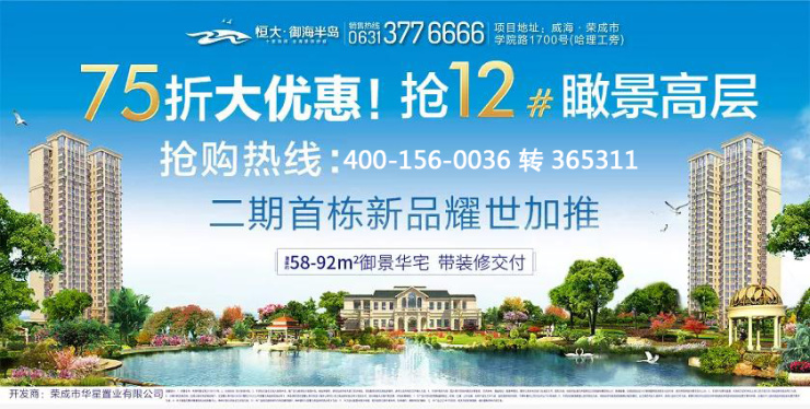 75折大优惠|威海恒大御海半岛12#瞰景高层新品加推