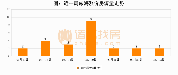 根据诸葛找房数据显示,威海24小时涨价房源量为2套,较02月22日持平。