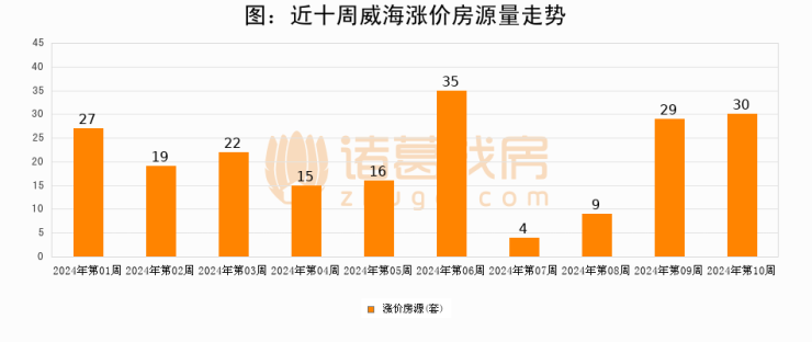从调价房源来看,第9周威海涨价房源30套,较上周上涨3.4%。与此同时,9周涨价房源占比回落1.41个百分点,业主信心小幅波动,购房者可则需入市。