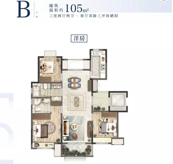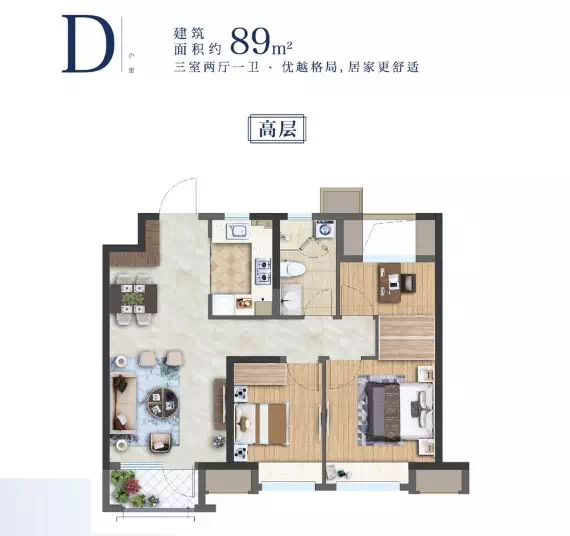 建面约89m²—95m²爆款三居,大开间,短进深,精研典范人居户型。建面约105m²—125m²臻稀洋房,6米超阔宽厅,舒适感与尊崇感不彰自显。