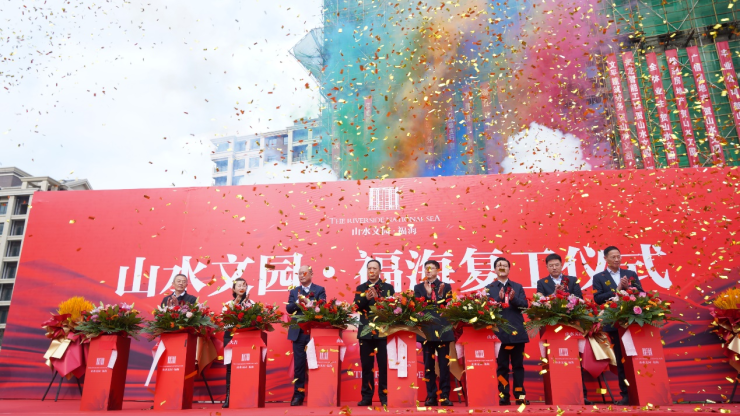 本次复工仪式在项目工地现场举办,由威海经济技术开发区建设局副局长宋敏女士主持,威海经济技术开发区党工委委员梁永波先生、威海经济技术开发区人民法院院长原永忠先生、威海经济技术开发区皇冠街道党工委书记林峰先生、烟台银行总行行长王建光先生、山东鑫恒置业有限公司管理人山东弘誉律师事务所主任国辉先生、山东鑫恒置业有限公司重整方成山集团有限公司山水文园·福海项目负责人尹永利先生、项目施工总包单位浙江建工集团有限公司山水文园·福海项目负责人虞洪鞅先生共同出席了复工仪式。