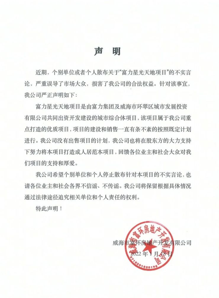 威海市富环房地产开发有限公司 2022-01-20 14:32:22