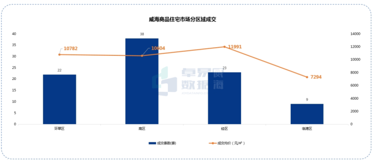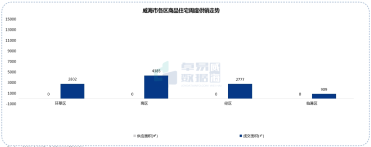 本周威海商品住宅成交共92套,高区成交套数最多,成交38套,销售面积4385㎡