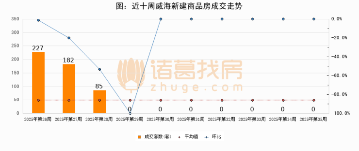 进入2025年第35周(08月25日-08月31日),威海新建商品房成交0套,较上周持平