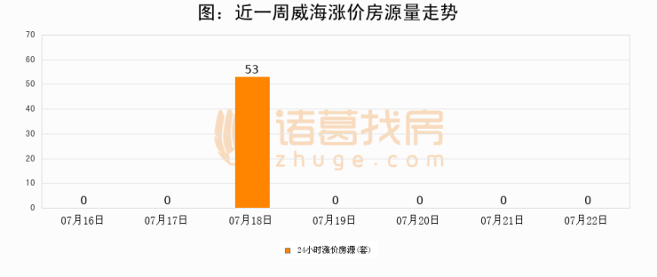 根据诸葛找房数据显示,威海24小时涨价房源量为0套,较07月21日持平。