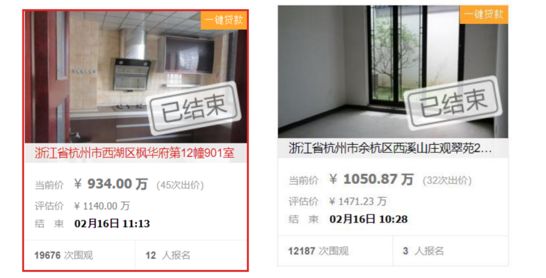 无独有偶,几天前杭州成交了4套千万级法拍房,也全部低于评估价。