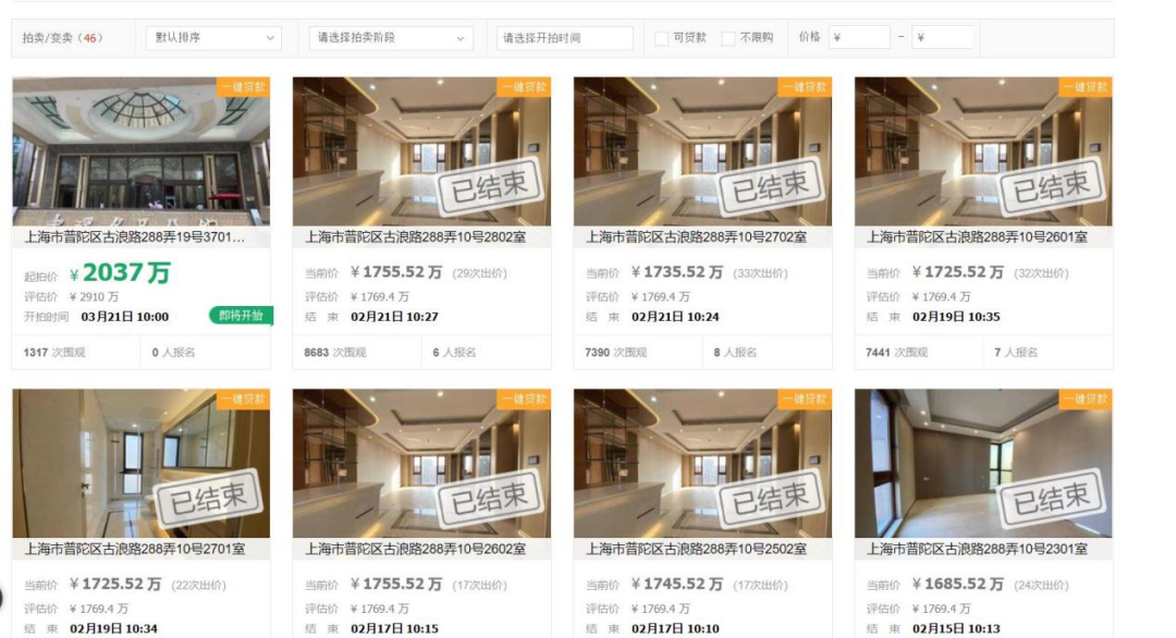 刚刚过去的周末,上海普陀区古浪路288弄中环名品公馆的10套千万级别豪宅在二拍中全部低于评估价成交。