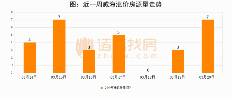 根据诸葛找房数据显示,威海24小时涨价房源量为7套,较03月19日增加4套,环比上涨133.3%。与此同时,涨价房源占比小幅扩大,业主信心有所提升。