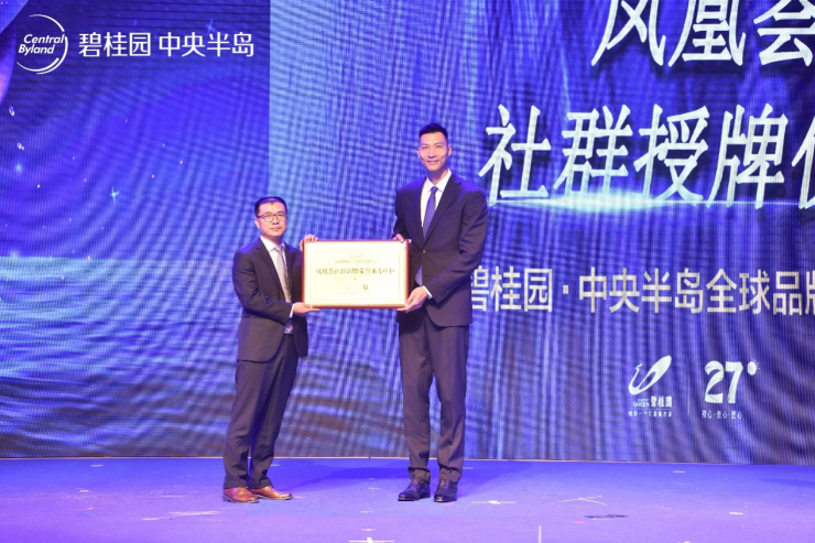 篮球运动员、碧桂园·中央半岛明星代言人易建联作为神秘嘉宾登场,以世界公民的身份,宣读《中央半岛公民公约》,并向项目物业公司授予凤凰荟社群联盟荣誉承办单位牌匾。
