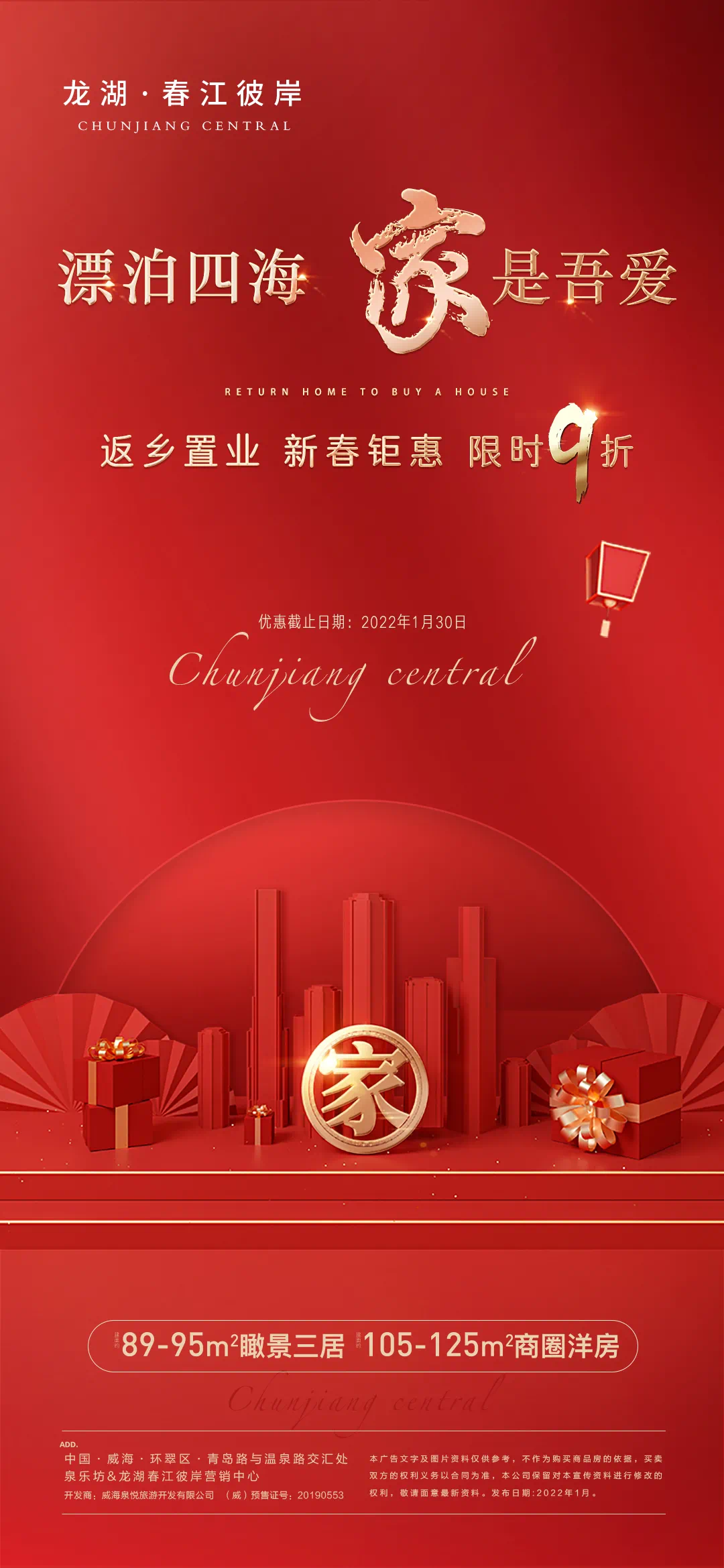 龙湖春江彼岸位于威海市环翠区青岛路与温泉路交汇处,自建酒店、影院、大型商超、温泉主题度假乐园等10万方一站式商业娱乐中心,主推建面约89-95㎡瞰景三居和建面约105-125㎡商圈洋房,现新春钜惠,限时9折 全城热销中,详情以龙湖春江彼岸售楼处为准。