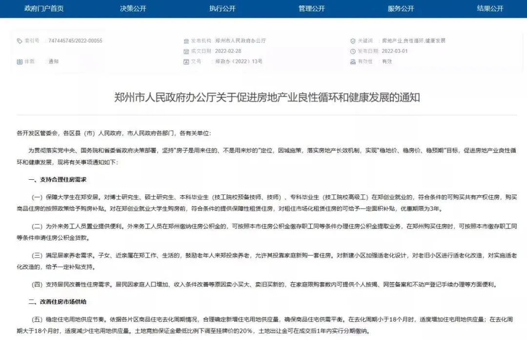 就在昨天,3月1日,河南省省会、9大国家中心城市之一的郑州,发布了重大楼市政策!