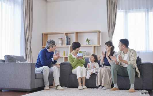 朋友聚会、亲友来访,往前一步能谈天说地,往后一步能书香漫天,彰显主人开敞待客礼序,奢雅的空间拥揽着每一缕阳光。三代同堂,畅谈生活,美妙人生,概莫如是。