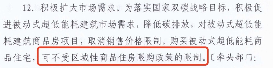 比如,购买被动式超低能耗商品住宅,可不受区域性商品住房限购政策的限制。