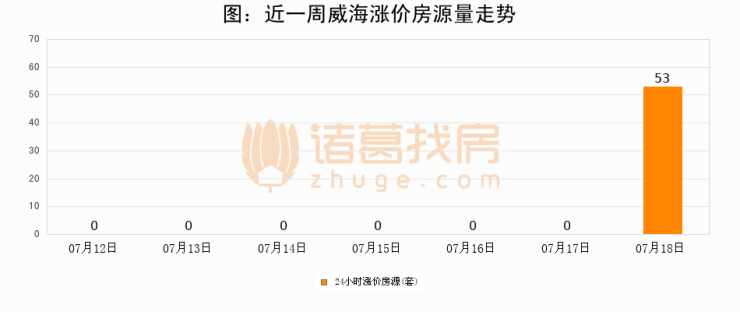 根据诸葛找房数据显示,威海24小时涨价房源量为53套,较07月17日增加53套,环比上涨0%。与此同时,涨价房源占比小幅扩大,业主信心有所提升。