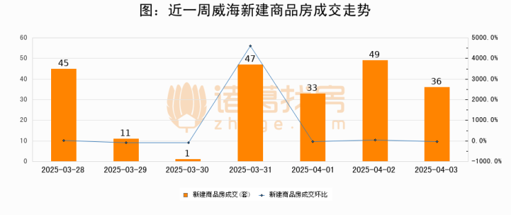 根据威海市住房和城乡建设局数据显示,2025年04月03日威海新建商品房成交36套,较昨日减少13套,环比下降26.5%。近一周威海新建商品房日均成交32套。04月03日单日成交36套,高于近一周平均水平12.5%。