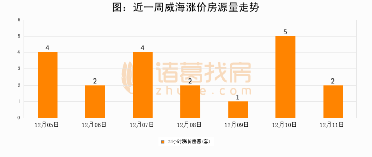根据诸葛找房数据显示,威海24小时涨价房源量为2套,较12月10日减少3套,环比下降60%。与此同时,涨价房源占比小幅回落,对于购房者来说是一个入市窗口期,购房者可抓住时机入市。