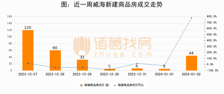 【威海成交日报】01月02日新房成交44套;涨价房源3套