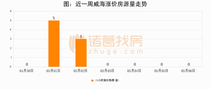 根据诸葛找房数据显示,威海24小时涨价房源量为0套,较05月05日持平。