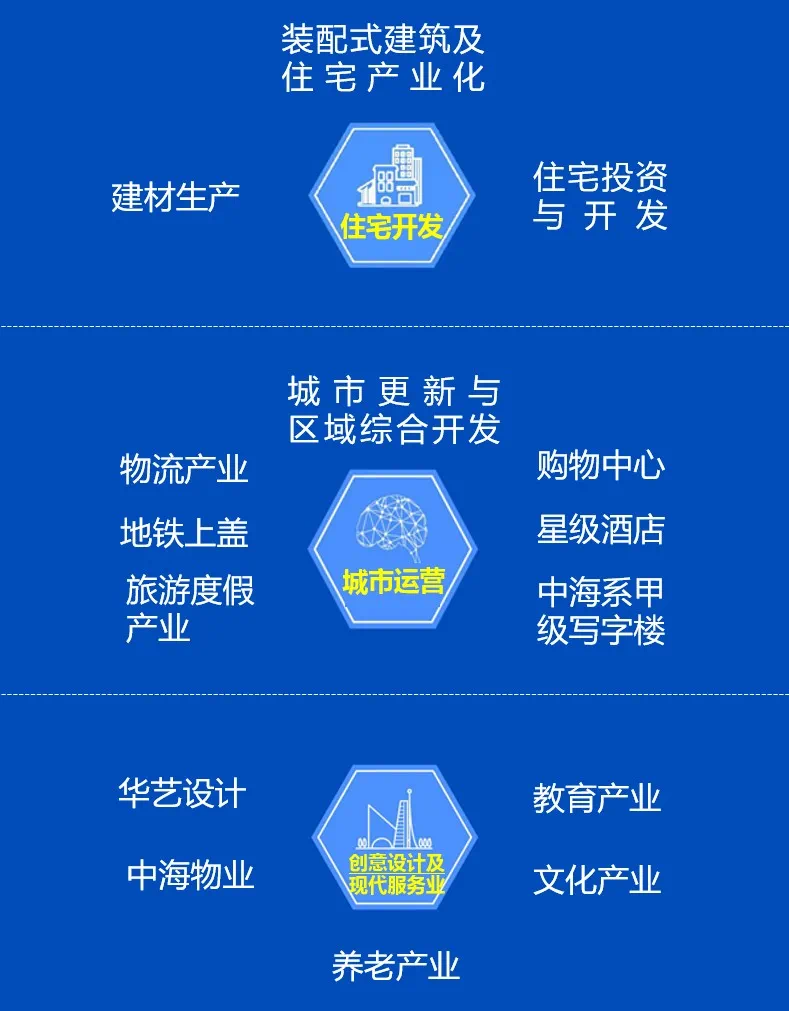 据中海官网介绍,成立41年来,中海地产在房地产开发领域已经形成三大产业集群,涵盖商用、民用房地产开发的各个领域。目前开发项目已经超过600个,45栋写字楼、15家购物中心、12家星级酒店,700多个在管物业、总资产达7158亿港元,是港澳地区较大的承建商,中国十大开发商之一,品牌价值排名前列名。
