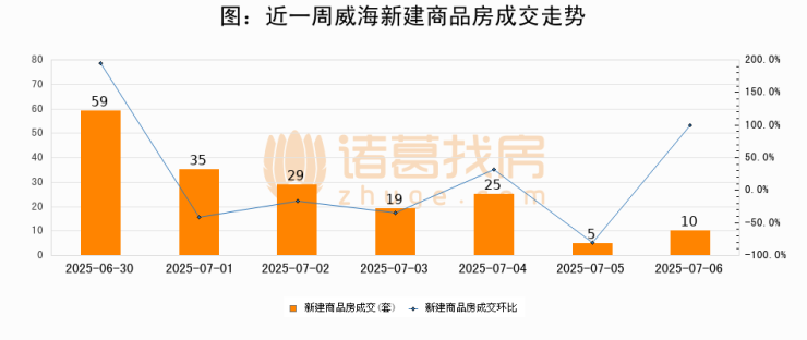 根据威海市住房和城乡建设局数据显示,2025年07月06日威海新建商品房成交10套,较昨日增加5套,环比上涨100%