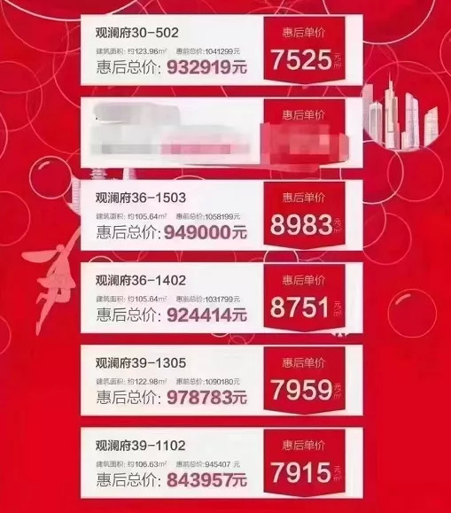 除了以上,城东马群的润栖府推出了5套特价房,促销力度较大的一套房源9折后优惠了近40万,最少的也让利近20万元,六合的保利观棠和府推出14999元/㎡的特价房,之前的销许价格为18600元/㎡。