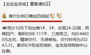 接着位于新玄武板块的玄武宝龙城首付降到4成。