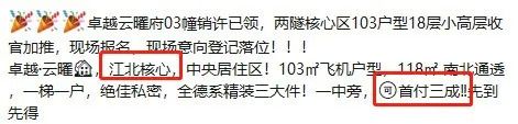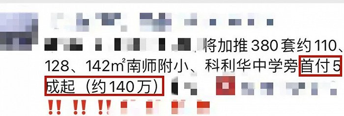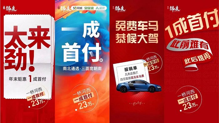 中交锦度推出的首付1成的海报更是在朋友圈大肆宣传,首付较低只要23万起。