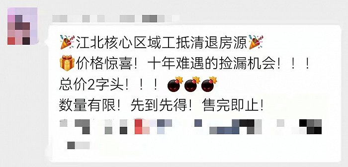 江北核心区和桥林某盘也推出86、101㎡、108㎡部分工抵房,直接打出了8折的特价优惠。