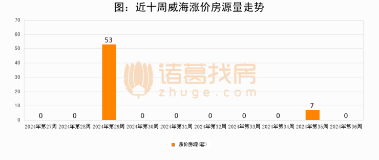 从调价房源来看,第36周威海涨价房源0套,较上周下降100%。与此同时,36周涨价房源占比提升88.71个百分点,业主信心持续恢复。