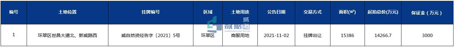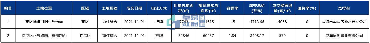 据卓易监测数据显示,本周威海市区共计成交两宗土地,均为商住综合用地。一宗位于高区神道口旧村改造南,楼面价4058元/平;另一宗位于临港区正气路南、泉州路西,楼面价579元/平。
