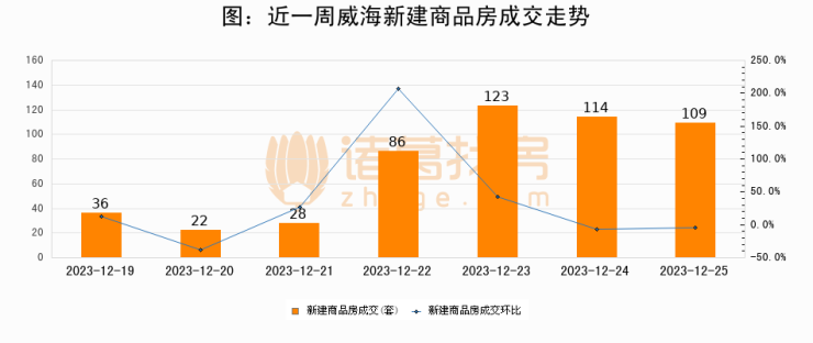 【威海成交日报】12月25日新房成交109套;涨价房源7套