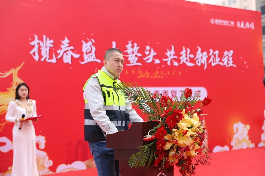 复工仪式上,项目公司工程副总刘总首先登台发表致辞,他表示:要在“保安全、保质量和保工期的同时,将该项目打造成精品模范工程!”