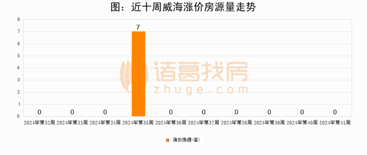 从调价房源来看,第41周威海涨价房源0套,较上周持平。与此同时,41周涨价房源占比回落100个百分点,业主信心小幅波动,购房者可则需入市。