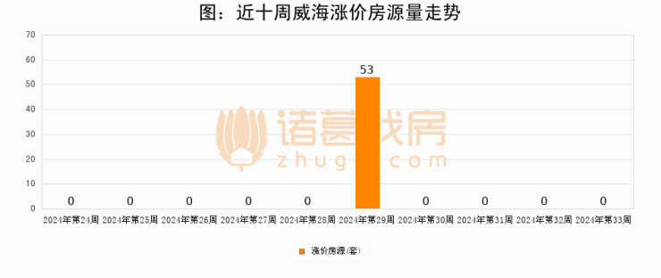 从调价房源来看,第33周威海涨价房源0套,较上周持平。与此同时,33周涨价房源占比持平